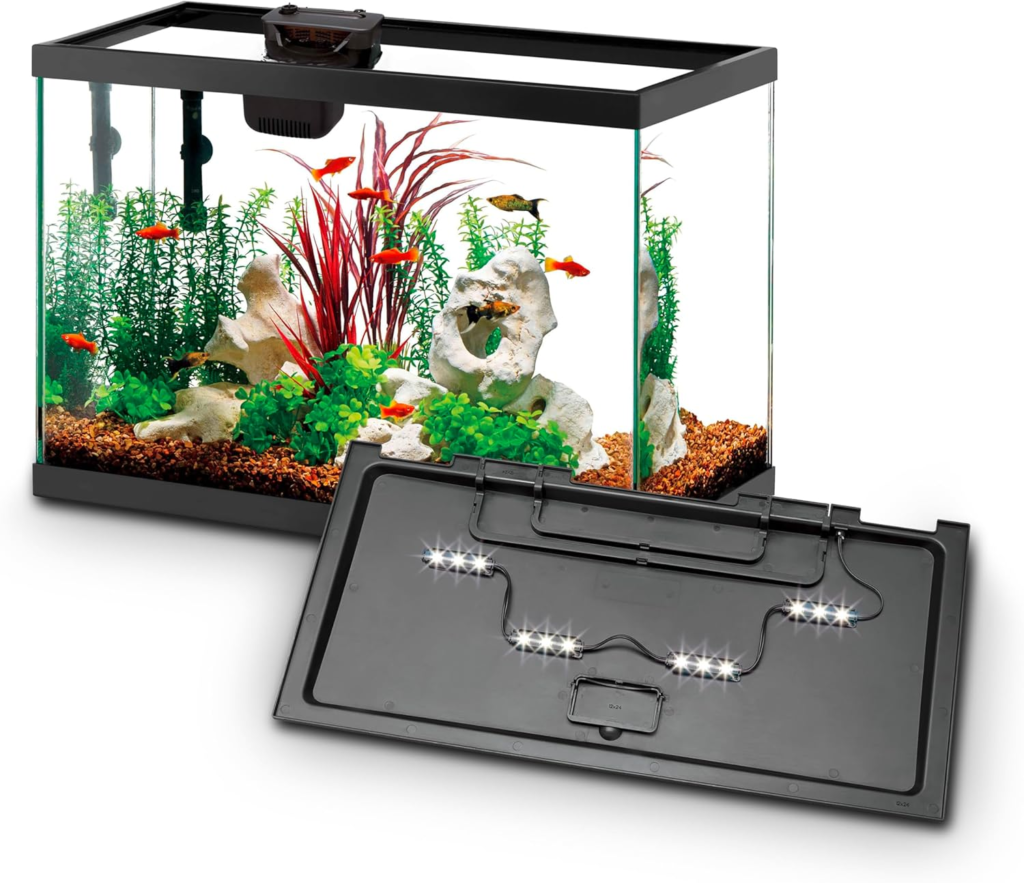 | Aqueon Aquarium Starter Kit (Smart Clean) | Best Easy-Maintenance Kit | 10–20 gal, also available in 20 gal | Smart Clean filtration simplifies water changes; LED lighting included | 🔘 Check price on Amazon |